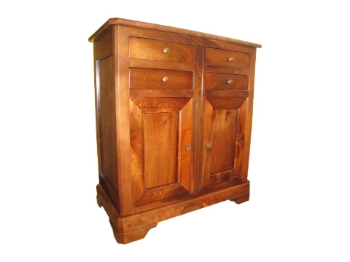 Meuble 2 portes 4 tiroirs style Vieille-France en Noyer de France massif.